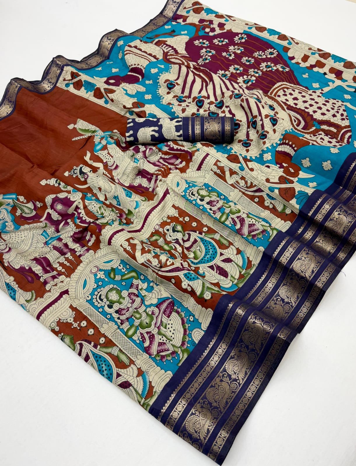 Experience timeless beauty with this exquisite cotton saree. Crafted with rich silk-blend fabric and adorned with intricate zari borders, it perfectly blends traditional charm with modern grace. Ideal for festive occasions, weddings, and cultural celebrations.